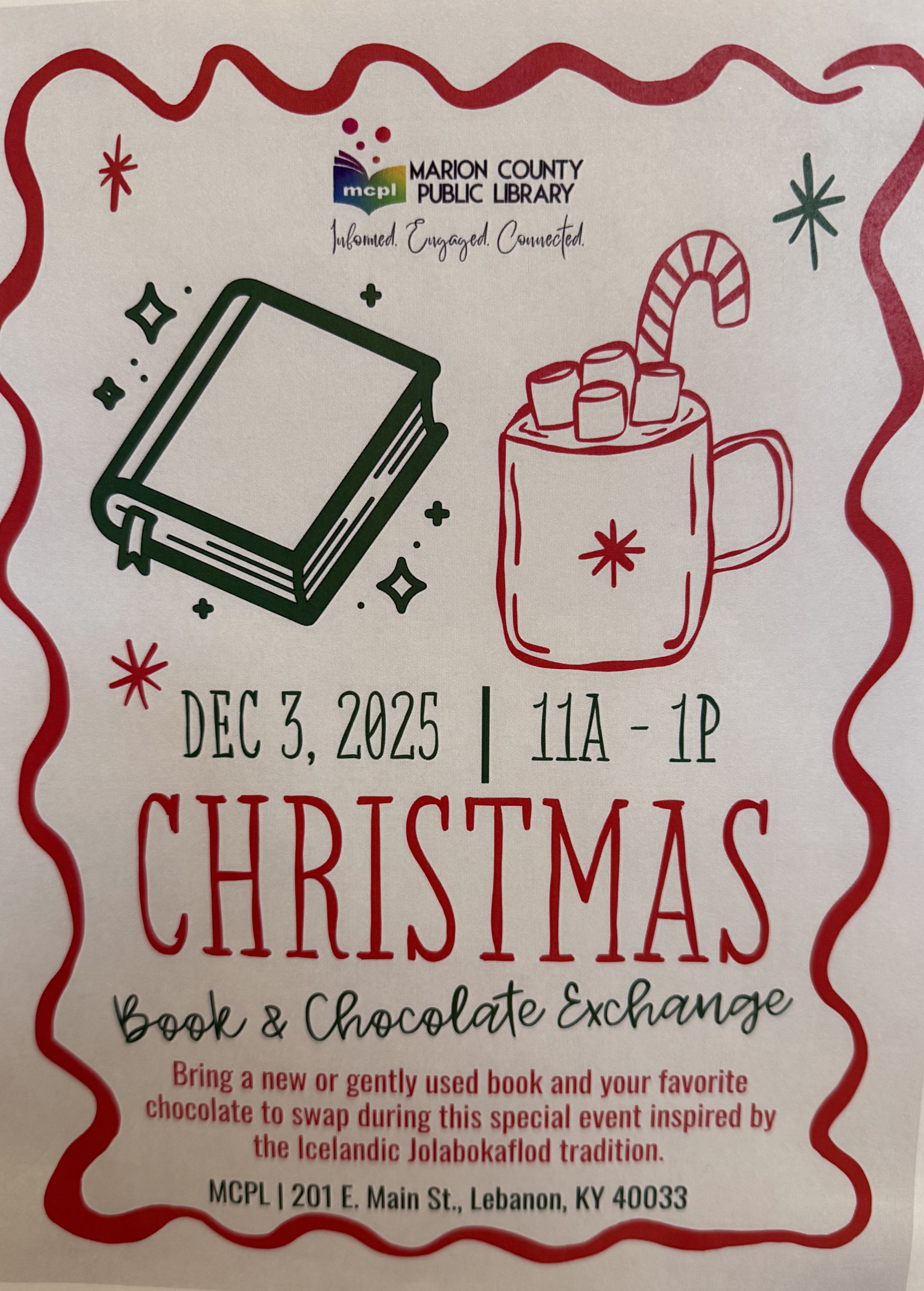 Upon arrival, guests will drop off their book, enjoy a warm cocoa or hot cider, and browse the growing display of titles. Once the exchange begins, everyone will select a book to take home—paired with a piece of chocolate, just as Icelanders do on Christmas Eve.